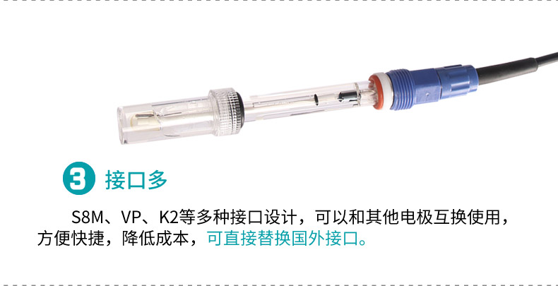 该电极能广泛用于微生物技术、制药、食品饮料、制糖,包括氯碱、采矿冶炼、造纸、纸浆、纺织品、石油化工、半导体电子工业等各种化工流程及废水处理等领域。